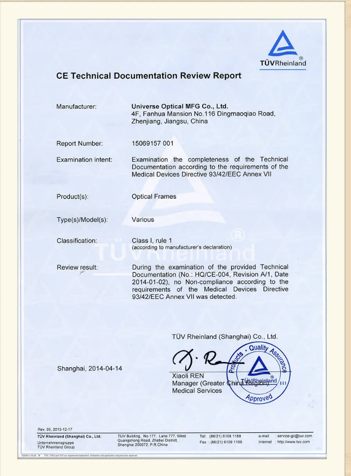 For more information about Universe Optical’s comprehensive product offerings and quality certifications, please visit the company's official website: https://www.universeeyewear.com/