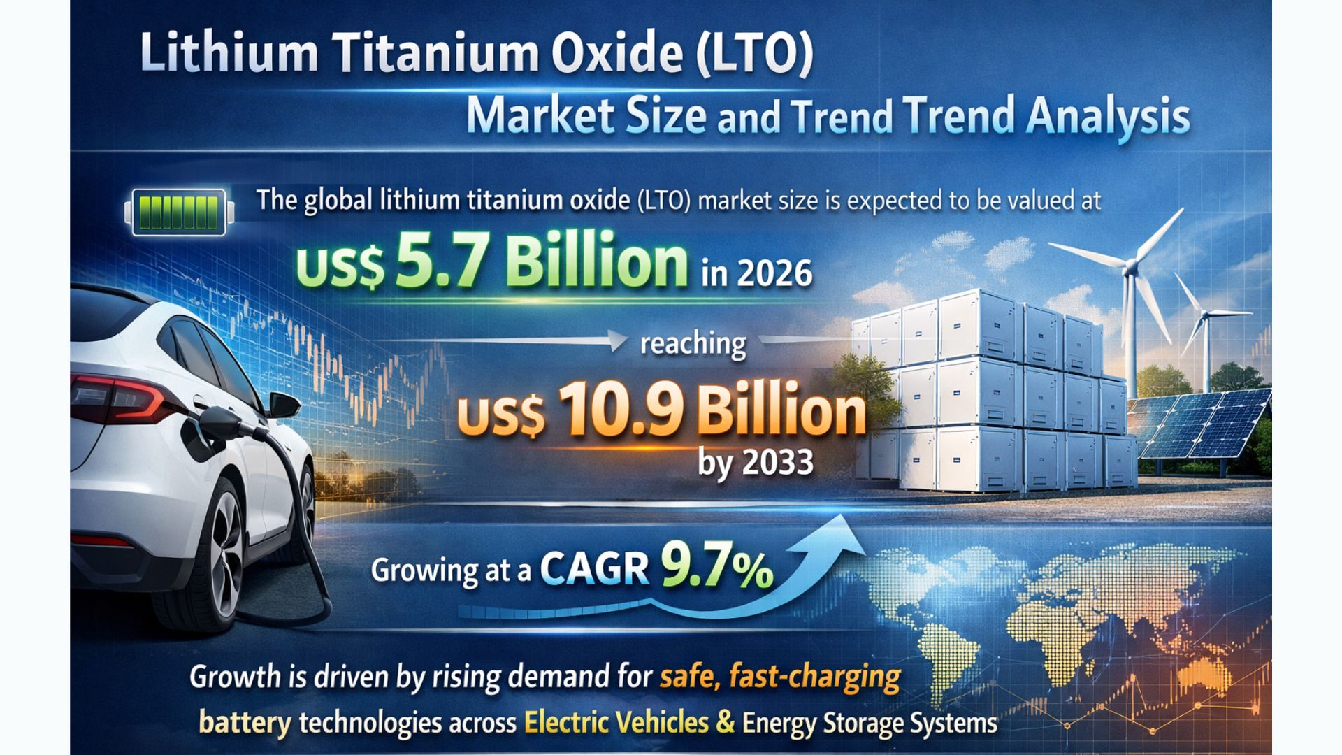 LONDON, LONDON, UNITED KINGDOM, April 15, 2026 /EINPresswire.com/ -- According to the latest study by Persistence Market Research, the global Lithium Titanium Oxide (LTO) market is poised for significant expansion, with its valuation projected to grow from US$ 5.7 billion in 2026 to US$ 10.9 billion by 2033, registering a robust CAGR of 9.7% during the forecast period. The increasing demand for fast-charging, long-life, and safe battery technologies is a key factor propelling the adoption of LTO batteries across multiple industries.